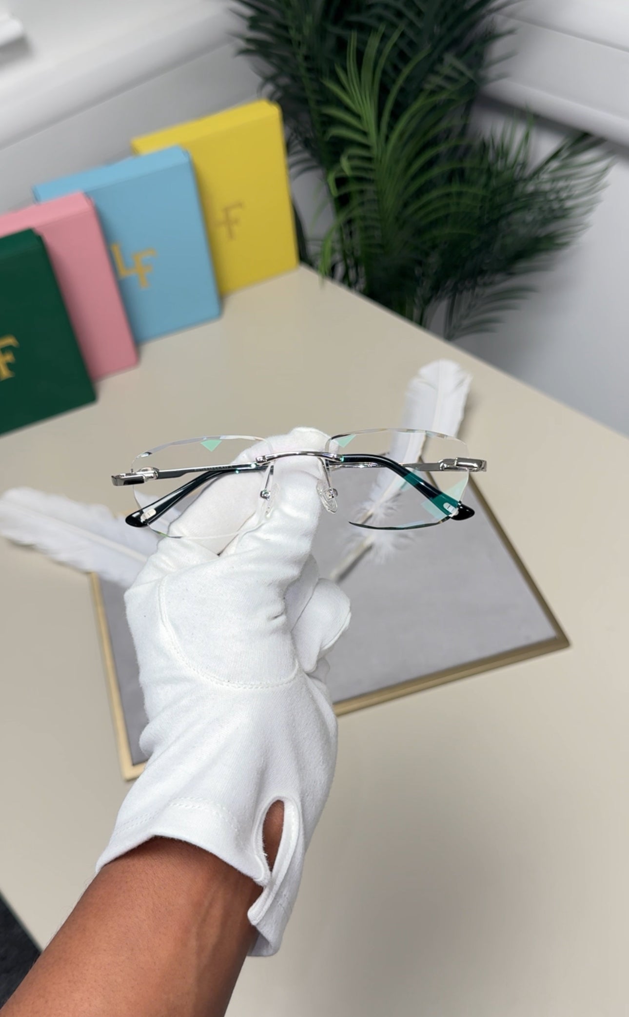 Custom Silver Rimless Class X - Clear Diamond Cut Lens
